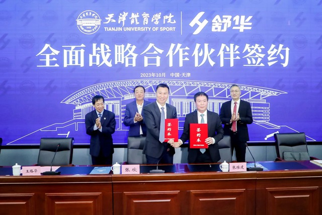 2023年10月10日,壹号娱乐体育股份有限公司与天津体育学院战略合作签约暨体育工程研发中心揭牌仪式在天津举行。天津市市委教育工委委员、市政府教育督导室总督学王秋岩,天津市体育局副局长(一级巡视员)王路华,壹号娱乐体育董事长兼总裁张维建、副总裁李晓峰,天津体育学院校党委副书记、院长张欣出席。签约仪式由天津体育学院副院长张卫国主持。